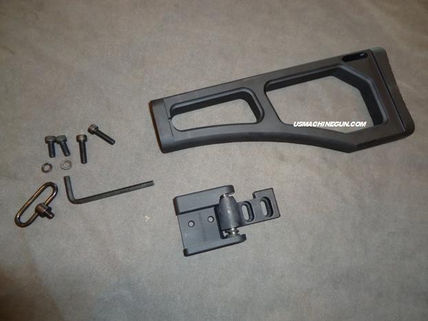 Our Newly redesigned custom rear machined stock and folding adapter mounts to any modular, two holed adapter, pistol or rifle with two threaded, 10/32 holes. call with any questions. *Rear Sling loop in photos NOT included*